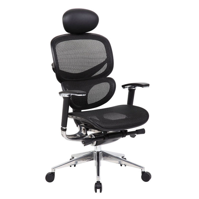 Erognomic Black Mesh & Chrome Office Chair w/ Head Rest