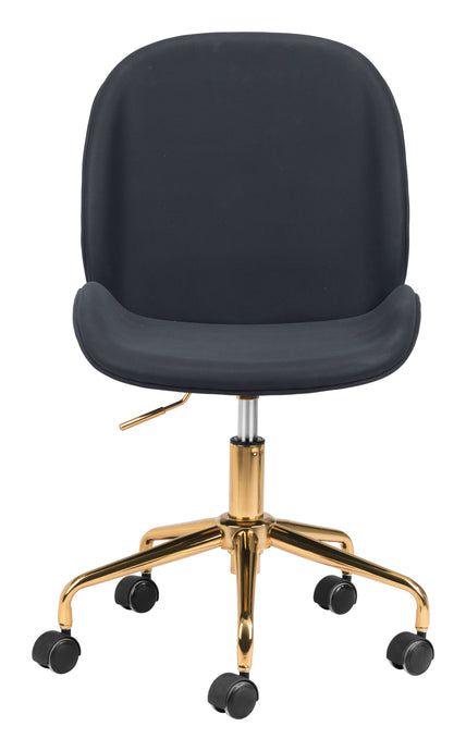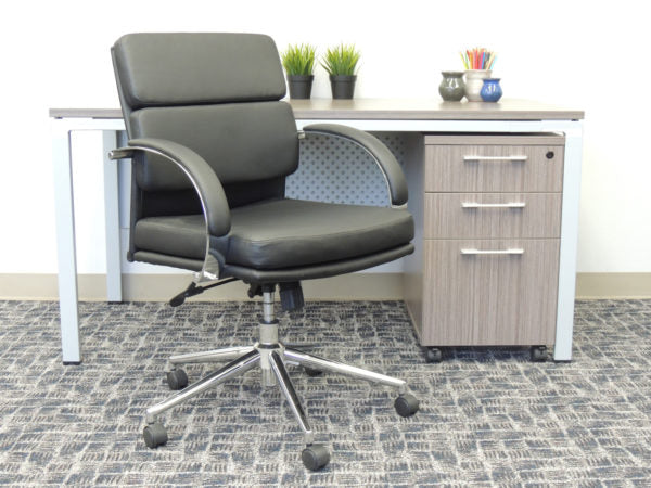 Mid-Back Breathable Flat-Back Black Faux Leather Office Chair